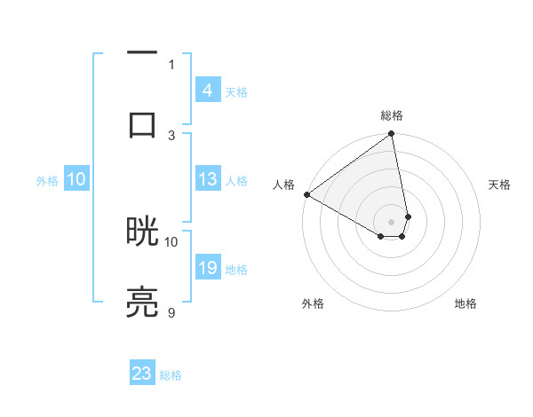 一口 晄亮さんの総格は23画の5点!