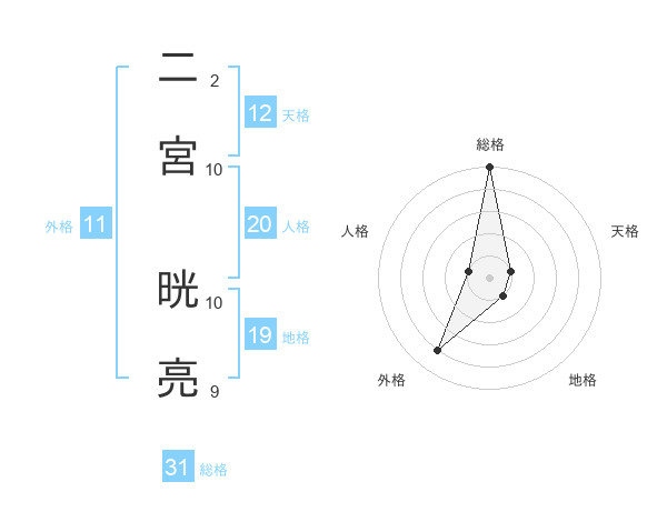 二宮 晄亮さんを姓名の画数から五運を鑑定