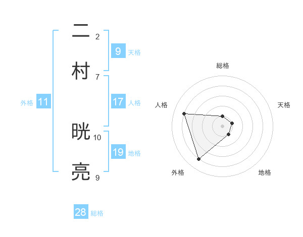 二村 晄亮さんを姓名の画数から五運を鑑定