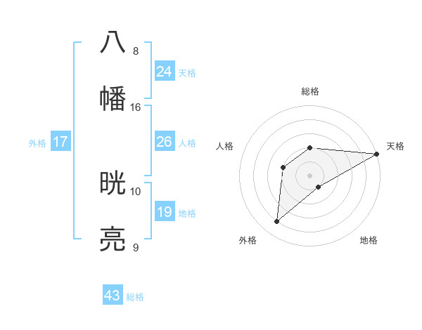 八幡 晄亮さんを姓名の画数から五運を鑑定