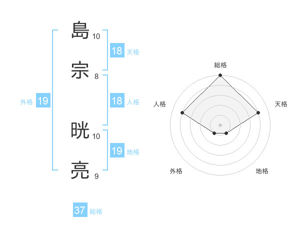 島宗 晄亮さんの総格は37画の5点!