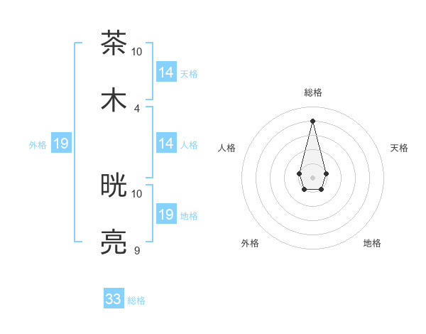 茶木 晄亮さんの総格は33画の4点!