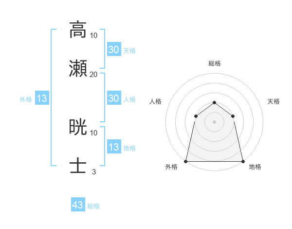 高瀬 晄士さんの総格は43画の2点!