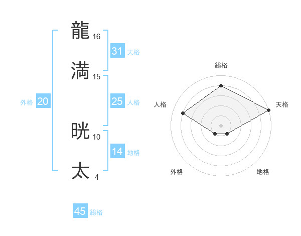龍満 晄太さんを姓名の画数から五運を鑑定
