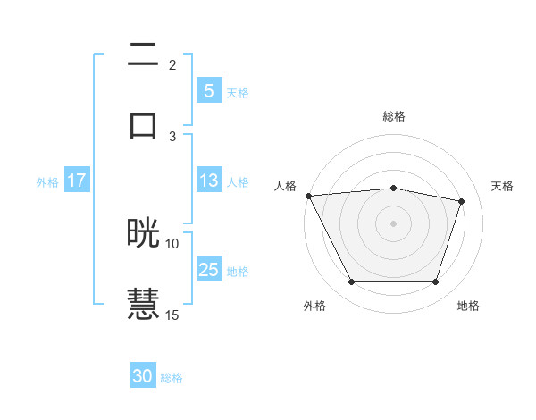 二口 晄慧さんの外格は17画の4点