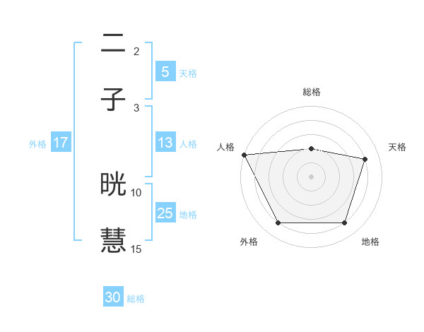 二子 晄慧さんの天格は5画の4点!