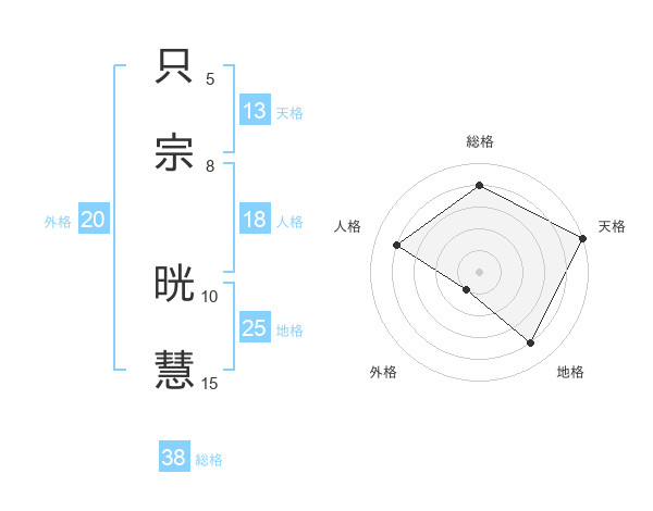 只宗 晄慧さんを姓名の画数から五運を鑑定