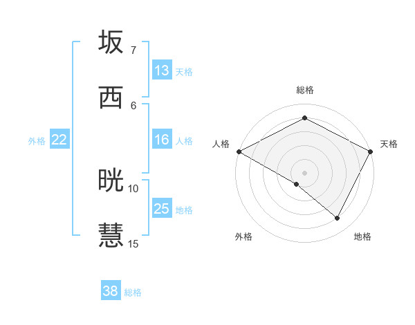 坂西 晄慧さんを姓名の画数から五運を鑑定
