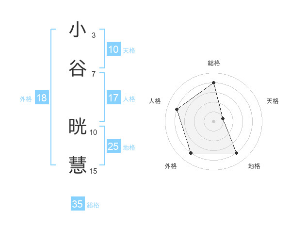 小谷 晄慧さんを姓名の画数から五運を鑑定