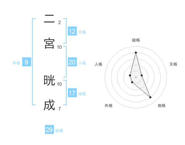 二宮 晄成さんを姓名の画数から五運を鑑定