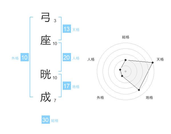 弓座 晄成さんを姓名の画数から五運を鑑定