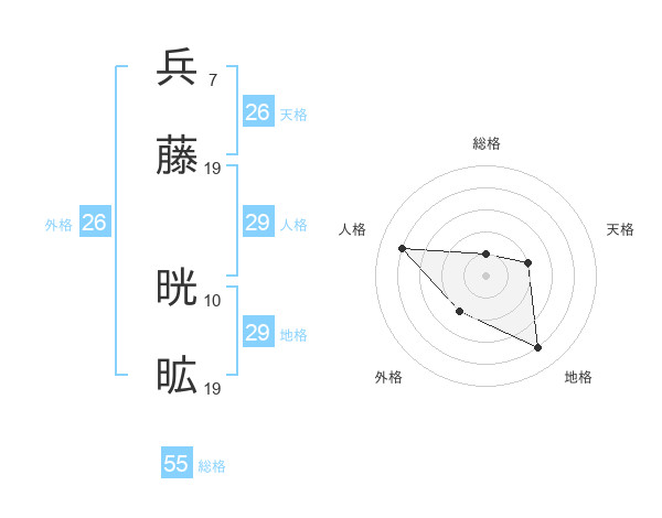 兵藤 晄昿さんを姓名の画数から五運を鑑定