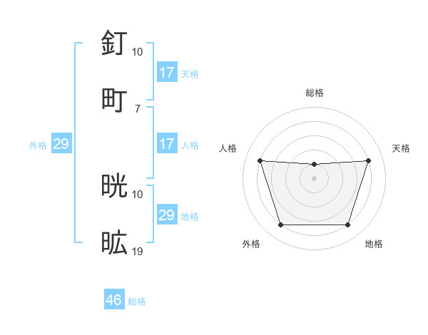 釘町 晄昿さんを姓名の画数から五運を鑑定