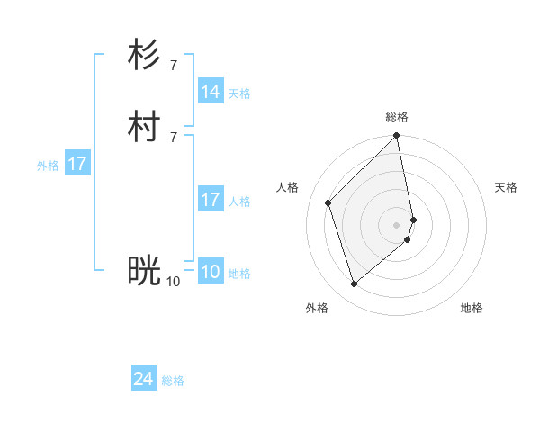 杉村 晄さんの総格は24画の5点!