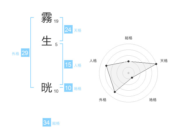 霧生 晄さんの外格は29画の4点!