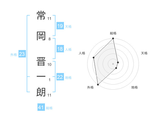 常岡 晋一朗さんの地格は22画の1点!