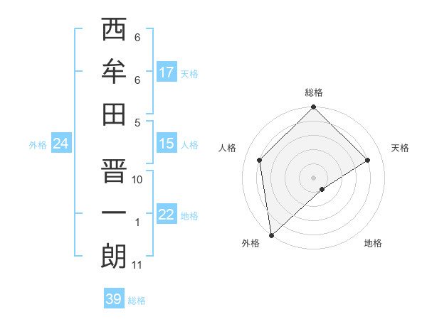 西牟田 晋一朗さんを姓名の画数から五運を鑑定