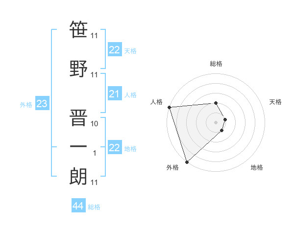 笹野 晋一朗さんを姓名の画数から五運を鑑定
