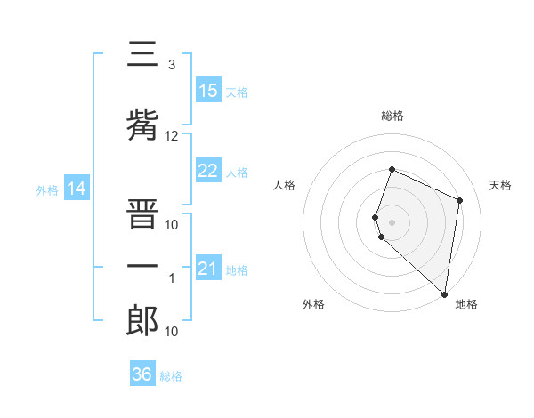 三觜 晋一郎さんを姓名の画数から五運を鑑定