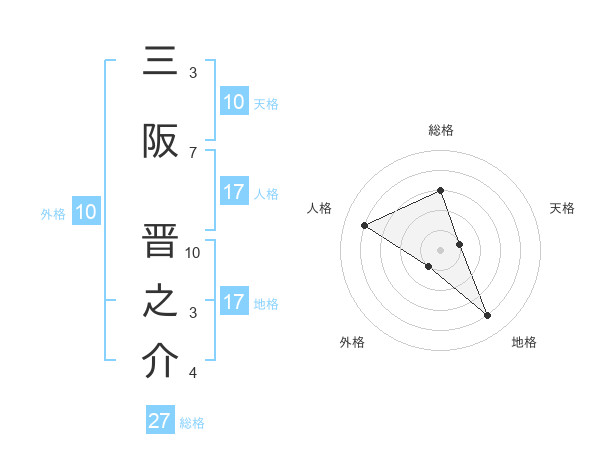 三阪 晋之介さんを姓名の画数から五運を鑑定