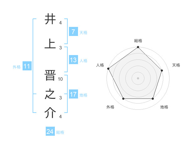 井上 晋之介さんを姓名の画数から五運を鑑定