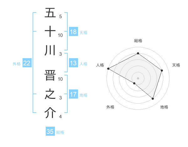 五十川 晋之介さんを姓名の画数から五運を鑑定