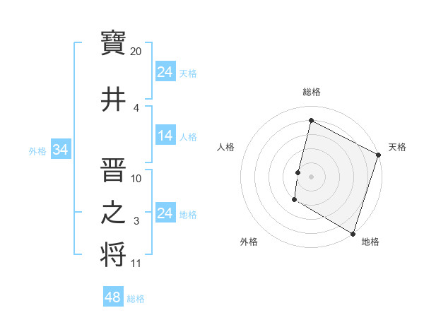 寶井 晋之将さんを姓名の画数から五運を鑑定