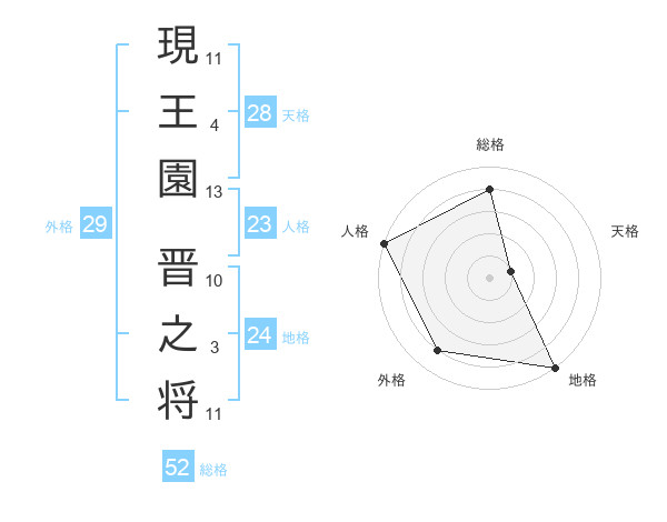 現王園 晋之将さんを姓名の画数から五運を鑑定