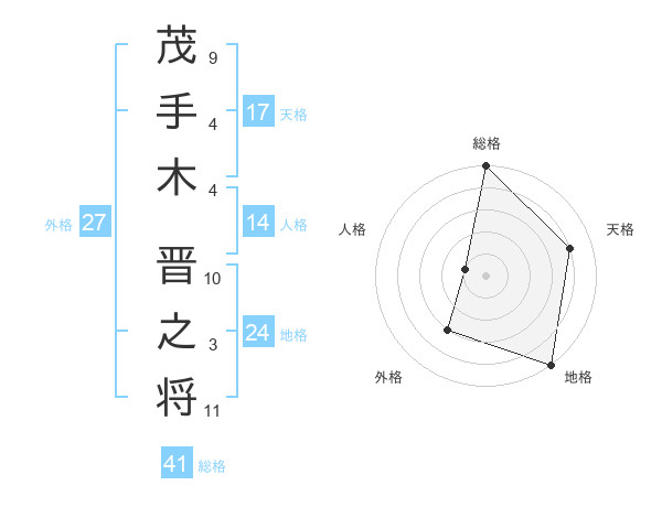 茂手木 晋之将さんを姓名の画数から五運を鑑定