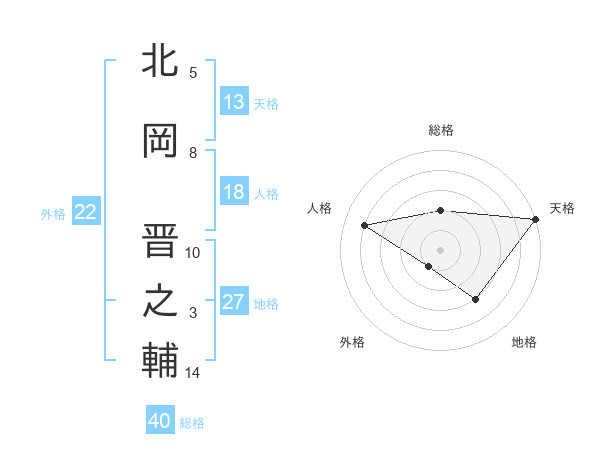 北岡 晋之輔さんを姓名の画数から五運を鑑定
