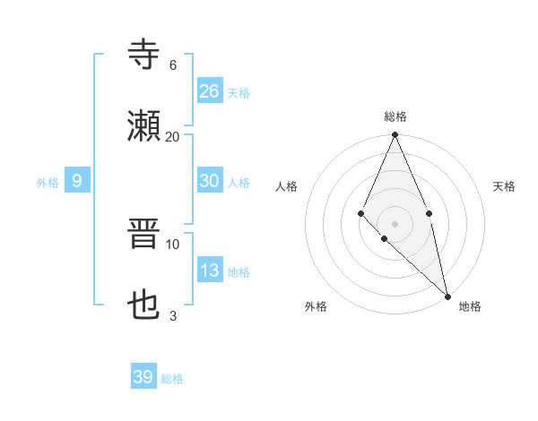 寺瀬 晋也さんの総格は39画の5点!