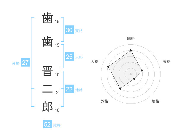 歯歯 晋二郎さんを姓名の画数から五運を鑑定