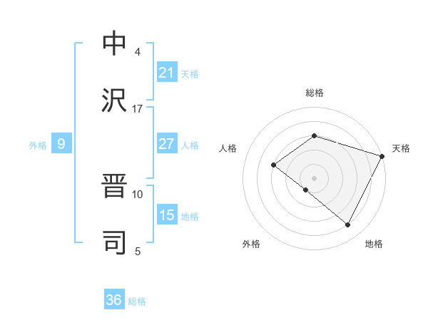 中沢 晋司さんを姓名の画数から五運を鑑定