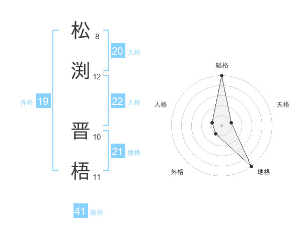 松渕 晋梧さんを姓名の画数から五運を鑑定