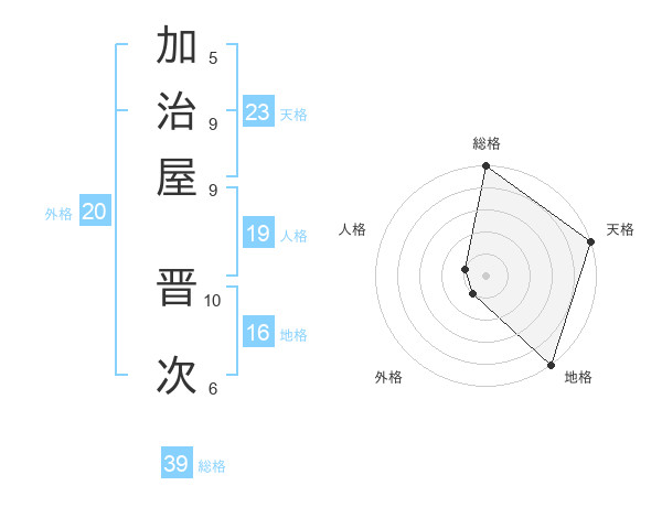 加治屋 晋次さんの天格は23画の5点
