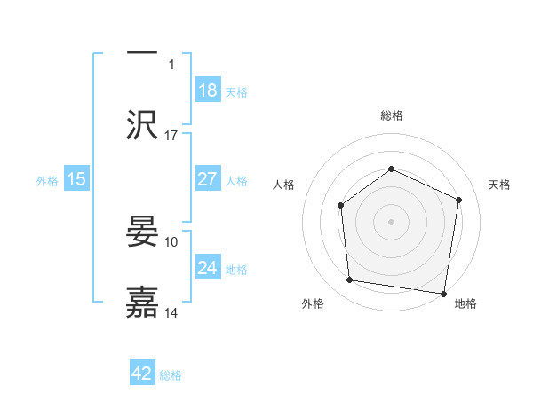 一沢 晏嘉さんを姓名の画数から五運を鑑定