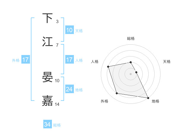 下江 晏嘉さんを姓名の画数から五運を鑑定