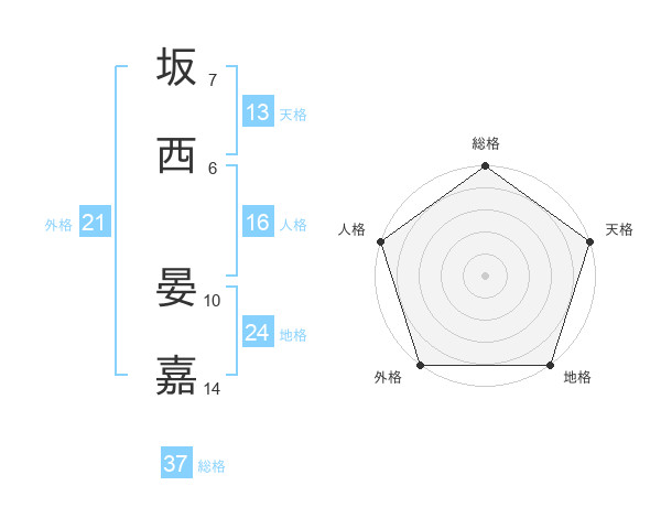 坂西 晏嘉さんの外格は21画の5点!