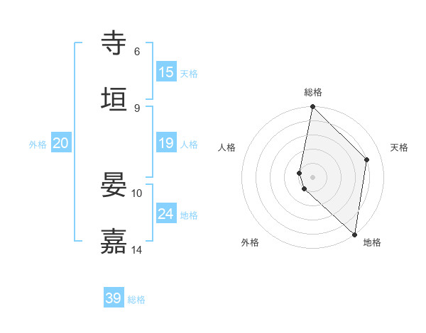 寺垣 晏嘉さんを姓名の画数から五運を鑑定