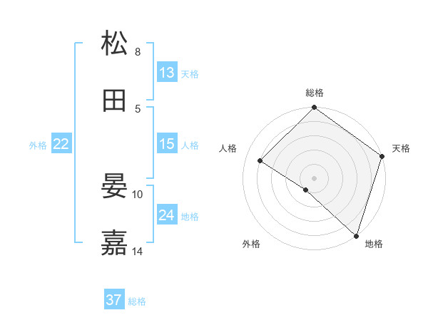 松田 晏嘉さんを姓名の画数から五運を鑑定
