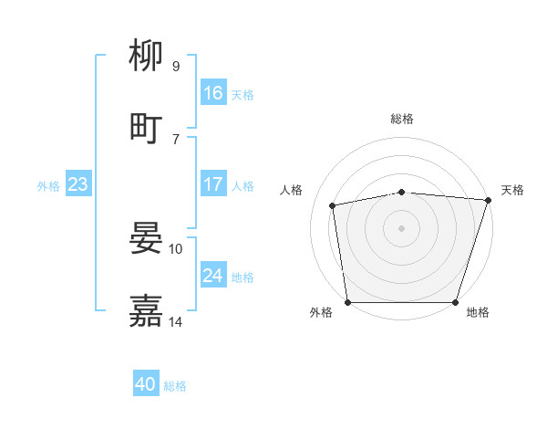 柳町 晏嘉さんを姓名の画数から五運を鑑定