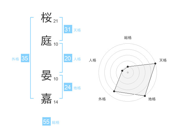 桜庭 晏嘉さんの天格は31画の5点!