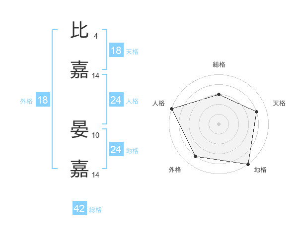 比嘉 晏嘉さんの人格は24画の5点!