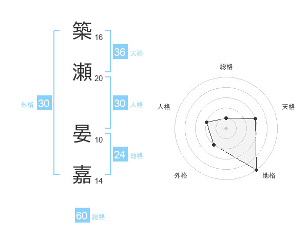 築瀬 晏嘉さんの外格は30画の2点!