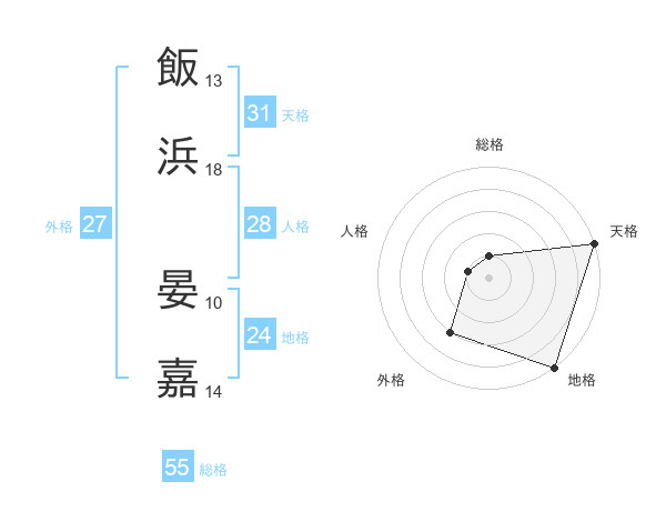飯浜 晏嘉さんの天格は31画の5点!