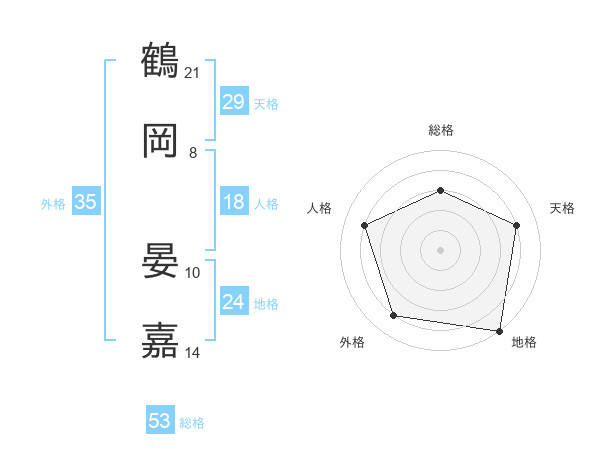 鶴岡 晏嘉さんの総格は53画の3点!