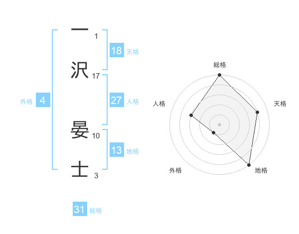 一沢 晏士さんを姓名の画数から五運を鑑定