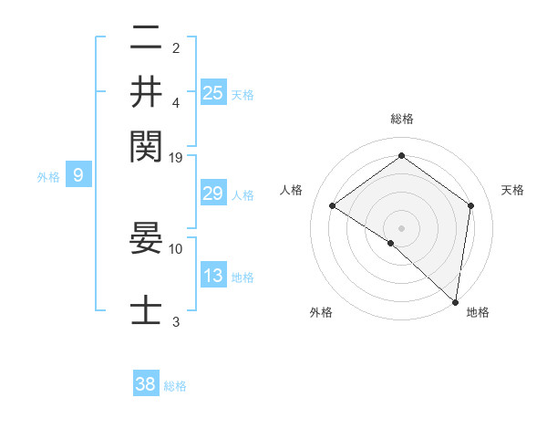 二井関 晏士さんを姓名の画数から五運を鑑定