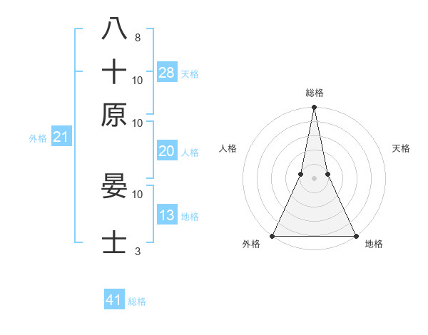 八十原 晏士さんの外格は21画の5点!