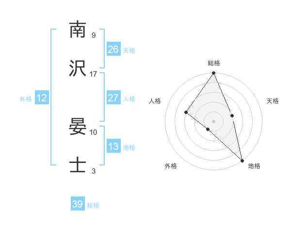 南沢 晏士さんの総格は39画の5点!